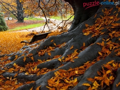 Puzzle Korzenie, Jesień, Drzewo, Liście