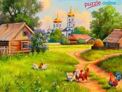 Puzzle Kościół, Wioska, Domy, Dróżka