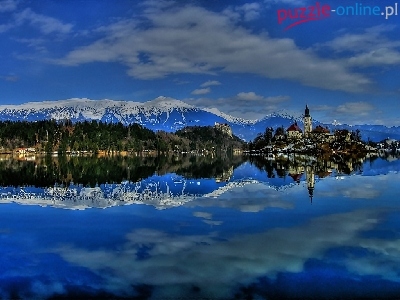 Puzzle Kościół, Góry, Jezioro, Odbicie