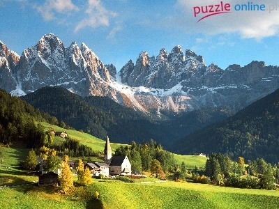 Puzzle Kościół, Góry, Śnieg, Domy