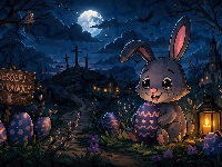 Kościół, Wielkanoc, Krzyże, Lampion, Pisanki, Zajączek, Jajka, Księżyc, Noc, Ciemna