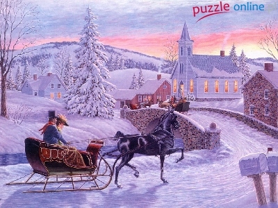 Puzzle Kościół, Zima, Sanie, Malarstwo