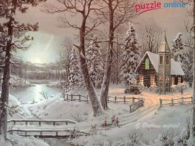 Puzzle Kościół, Zima, Widoczek, Malarstwo