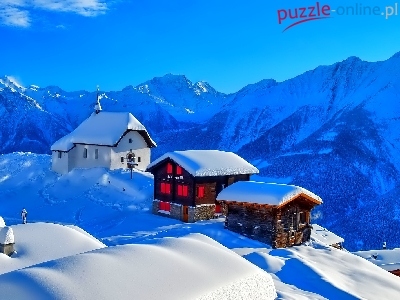 Kościółek, Domy, Zima, Góry, Ośnieżone