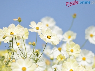 Puzzle Kosmea, Białe, Kwiaty, Niebo