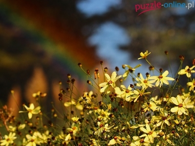 Puzzle Kosmea, Żółte, Kwiaty, Tęcza