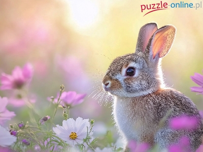 Puzzle Kwiaty, Szary, Zając, Kosmea
