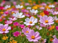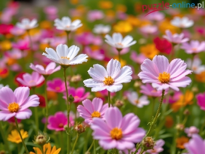 Puzzle Różowe, Kwiaty, Białe, Kosmea