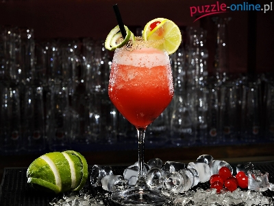 Puzzle Kostki, Drink, Owoce, Lodu