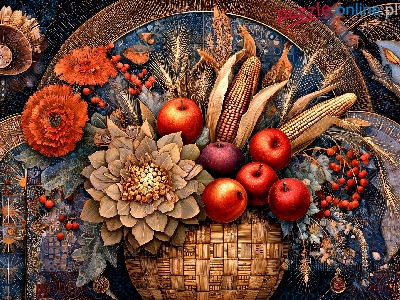 Puzzle Kwiaty, Kosz, Jabłka, Grafika AI