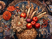 Kwiaty, Kosz, Jabłka, Grafika AI