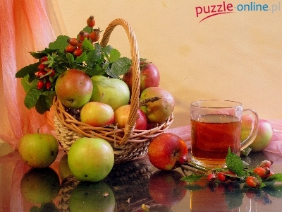 Puzzle Jabłka, Kosz, Herbatka
