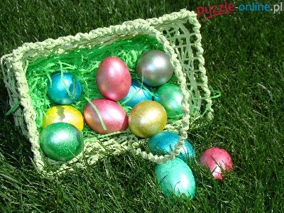 Puzzle Koszyczek, Kolorowe, Jajka, Wielkanoc