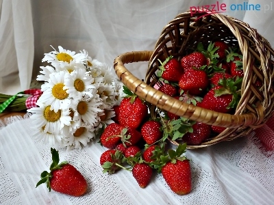 Koszyczek, Truskawki, Kompozycja, Wiklinowy, Rozsypane
