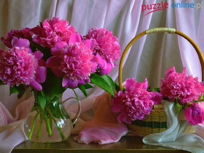 Puzzle Koszyk, Piwonie, Bukiety, Kompozycja