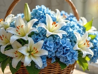 Hortensje, Kwiaty, Lilie, Koszyk