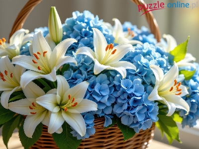 Puzzle Hortensje, Kwiaty, Lilie, Koszyk