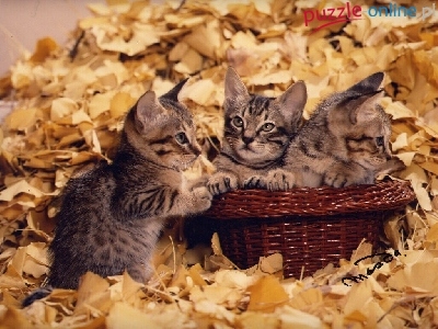 Puzzle Koszyk, Trzy, Kotki, Liście