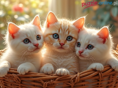 Puzzle Koty, Trzy, Białe, Koszyk