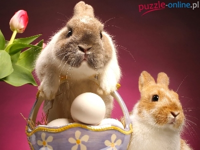 Koszyk, Wielkanoc, Dwa, Króliczki, Jajka
