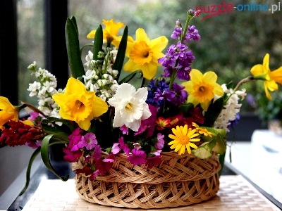 Koszyk, Podkładka, Bukiet, Kwiatów, Pleciona