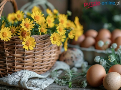 Żółte, Koszyk, Kwiaty, Jajka, Tkanina