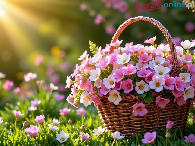 Puzzle Koszyk, Wiklinowy, Kwiaty