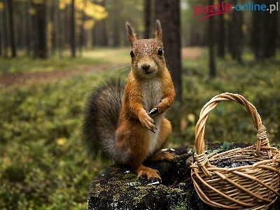 Puzzle Koszyk, Wiewiórka, Las, Jesień