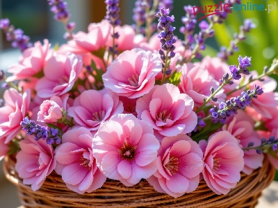 Puzzle Lawenda, Różowe, Kwiaty, Koszyk