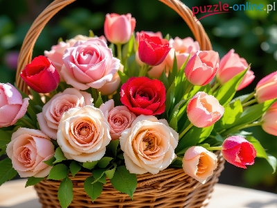 Puzzle Tulipany, Kwiaty, Róże, Koszyk