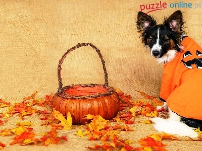 Puzzle Koszyk, Pies, Ubranko, Liście