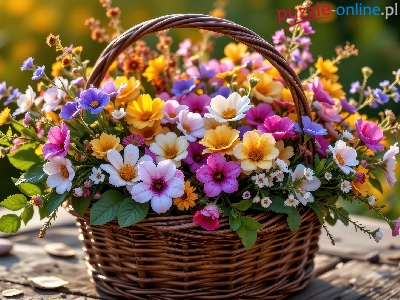 Puzzle Wiklinowy, Kolorowe, Kwiaty, Koszyk