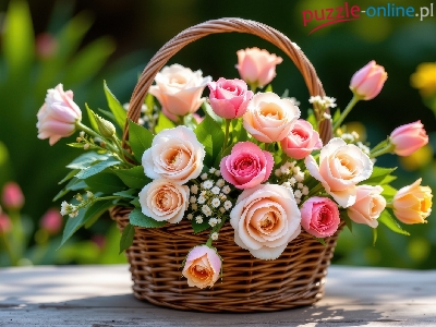 Puzzle Wiklinowy, Kwiaty, Róże, Koszyk