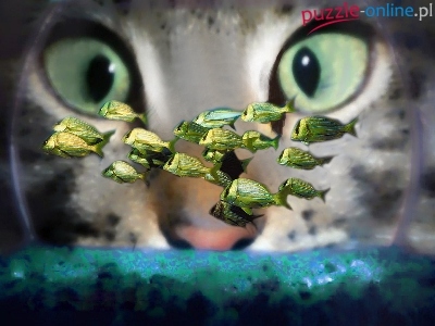 Puzzle Akwarium, Kot, Rybki