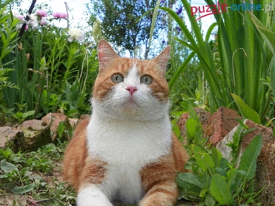 Puzzle Kot, Rudo, Biały, Spojrzenie