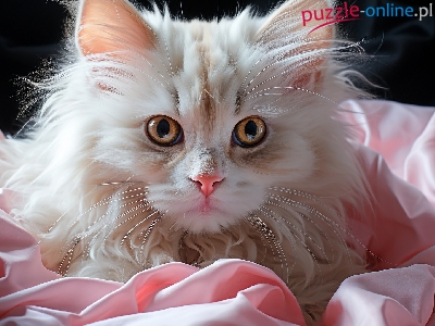 Biały, Kot, Długowłosy, Posłanie, Różowe