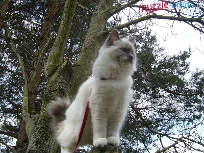 Puzzle Kot, Drzewo, Gałęzie, Smycz