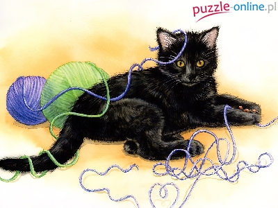 Puzzle Kłębek, Kot, Włóczki