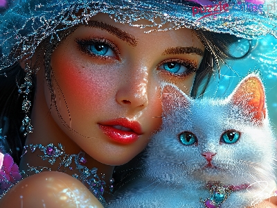 Oczy, Biały, Kobieta, Kot, Grafika AI, Niebieskie