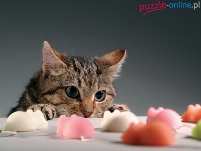 Puzzle Kolorowe, Kot, Myszki