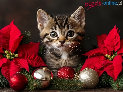 Gwiazda betlejemska, Mały, Kot, Kotek, Bombki, Kwiaty