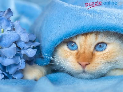 Koc, Niebieskooki, Biszkoptowy, Kot, Hortensje, Niebieski
