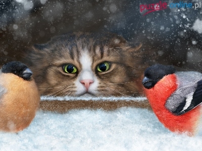 Kot, Okno, Gile, Zima, Parapet, Ptaki