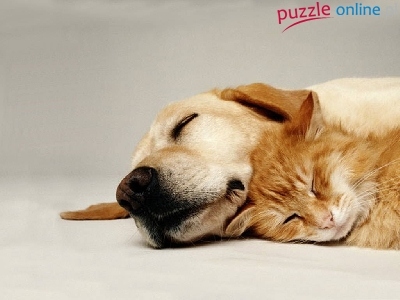 Puzzle Kot, Śpiące, Pies, Głowy