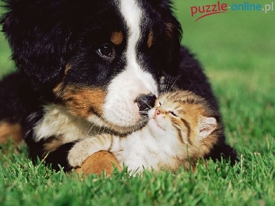 Puzzle Trawa, Kot, Pies, Berneński pies pasterski