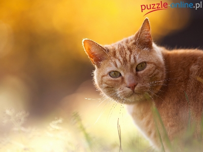 Puzzle Źdźbła, Rudy, Kot, Trawy