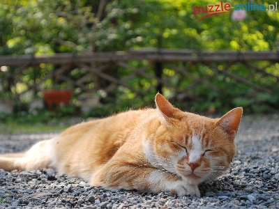 Puzzle Kot, Śpiący, Rudy, Kamyczki
