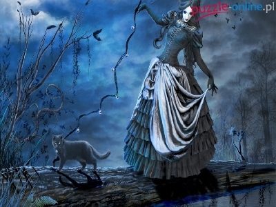 Puzzle Kot, Kobieta, Suknia, Drzewo