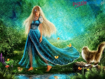 Puzzle Kot, Kobieta, Suknia, Las