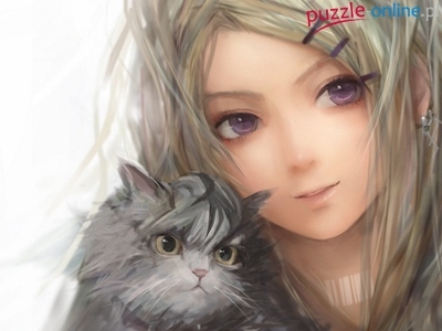 Puzzle Kot, Dziewczyna, Szary, Anime